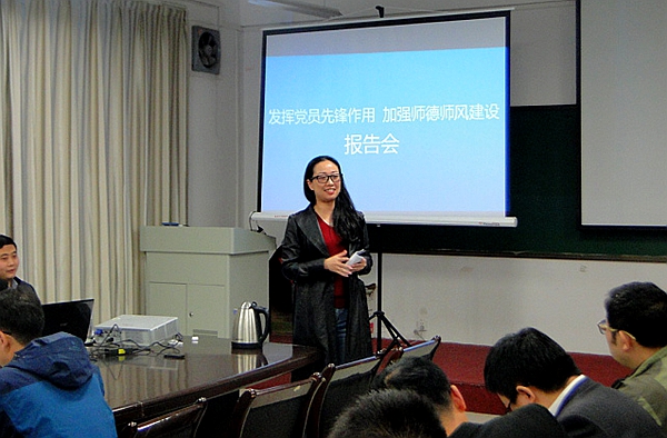 报告会上,吴莹老师、祝聪楠老师分别结合自身教育教学实际,讲述了生动的事例,分享了成功的经验,诠释了高尚的师德。吴莹老师讲到:“对学生负责、对自己负责,不断修正完善自己,保持责任感、畏惧感,努力把自己该做的事情做好,是多年来一直坚持的原则。每个人都做好自己,小河有水大河满,党员先进性就自然体现出来了”。祝聪楠老师指出:“学生工作需要我们以奉献的精神,用心去创新性开展工作,才会有好的效果。要相信每个学生身上都有闪光点,要用心去发现、用心去沟通,知道学生需要的是什么,时刻准备好。做到了真实与真诚,就会受到学生的真心拥护和欢迎。”