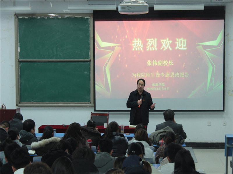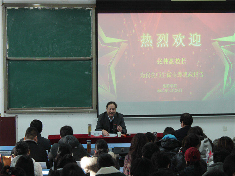 12月24日下午,副校长张伟于一号教学楼合301教室为国产又黄又硬又粗i师生带来一场生动的专题思政报告,学院全体教师及团学会学生干部近200人聆听了报告。报告会由国产又黄又硬又粗i党委书记李喜民主持。