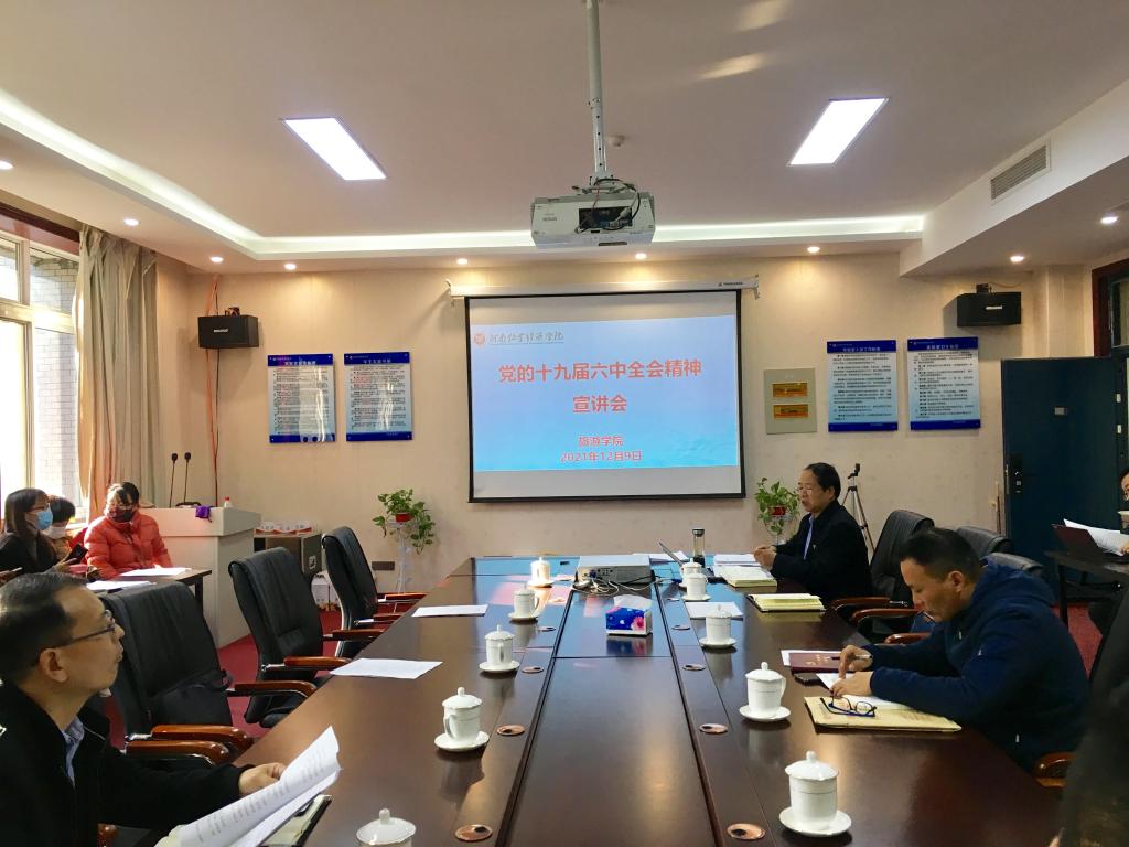 为深入学习贯彻党的十九届六中全会精神,引导广大教师把思想和行动统一到全会精神上来,按照校党委统一安排部署,12月9日下午,国产又黄又硬又粗i举行党的十九届六中全会精神专题宣讲会,院党委书记李喜民主讲,学院全体教师参加学习。