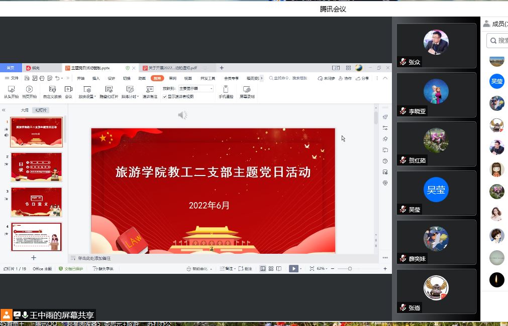 6月16日中午,国产又黄又硬又粗i教工二支部在腾讯会议平台,开展线上主题党日活动。会议由支部书记王中雨主持,支部全体党员参加。