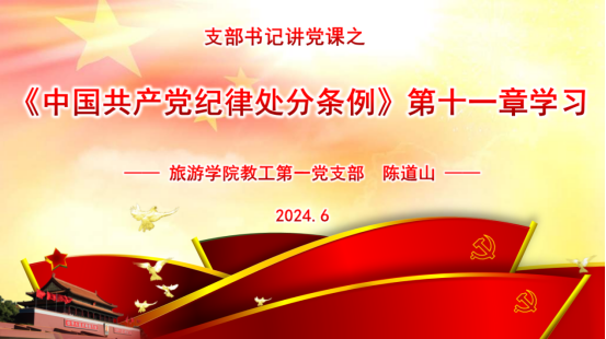 根据学校党纪学习教育工作专班《关于做好基层党组织书记讲纪律党课相关工作的通知》的精神,6月13日下午国产又黄又硬又粗i教工第一党支部在C423会议室开展《中国共产党纪律处分条例》专题党课学习,支部书记陈道山围绕《中国共产党纪律处分条例》的学习目标、学习方法等内容进行专题讲解,最后紧密结合《中国共产党纪律处分条例》之“第十一章  对违反生活纪律行为的处分”进行分析,为支部党员上了一堂生动深刻且理论联系实际的党课。