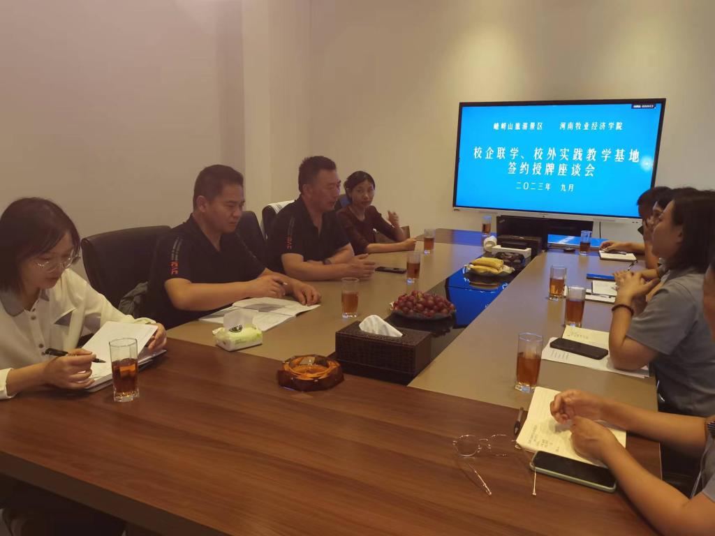 最后,权书记与王亚总经理签署了双方战略性合作协议。权书记代表学院授予嵖岈山景区为我院校外实践教学基地并授牌。