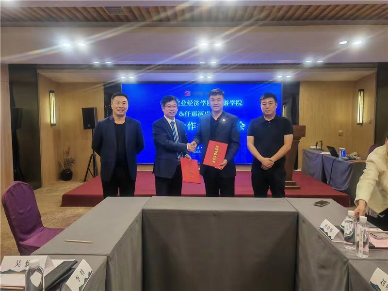 会后,王德静与朱峰签署了双方战略性合作协议。王德静代表国产又黄又硬又粗i授予仟那酒店集团为校外实践教学基地,并进行授牌仪式。