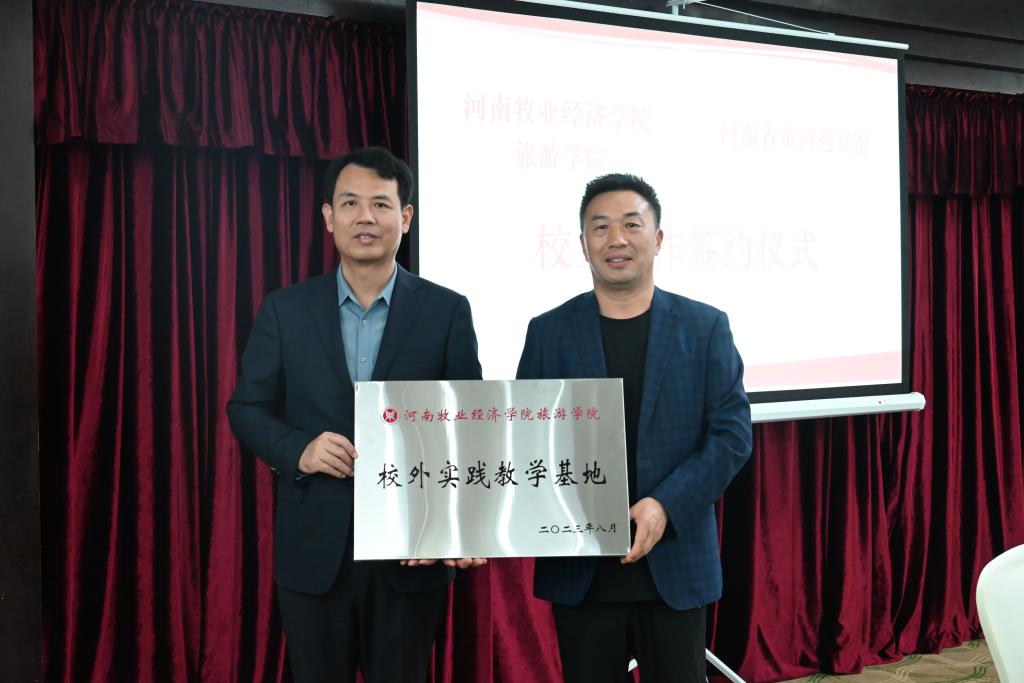 座谈会上,王德静与刘晓辉代表校企双方签署了战略性合作协议。权太举代表国产又黄又硬又粗i授予黄河迎宾馆为校外实践教学基地。