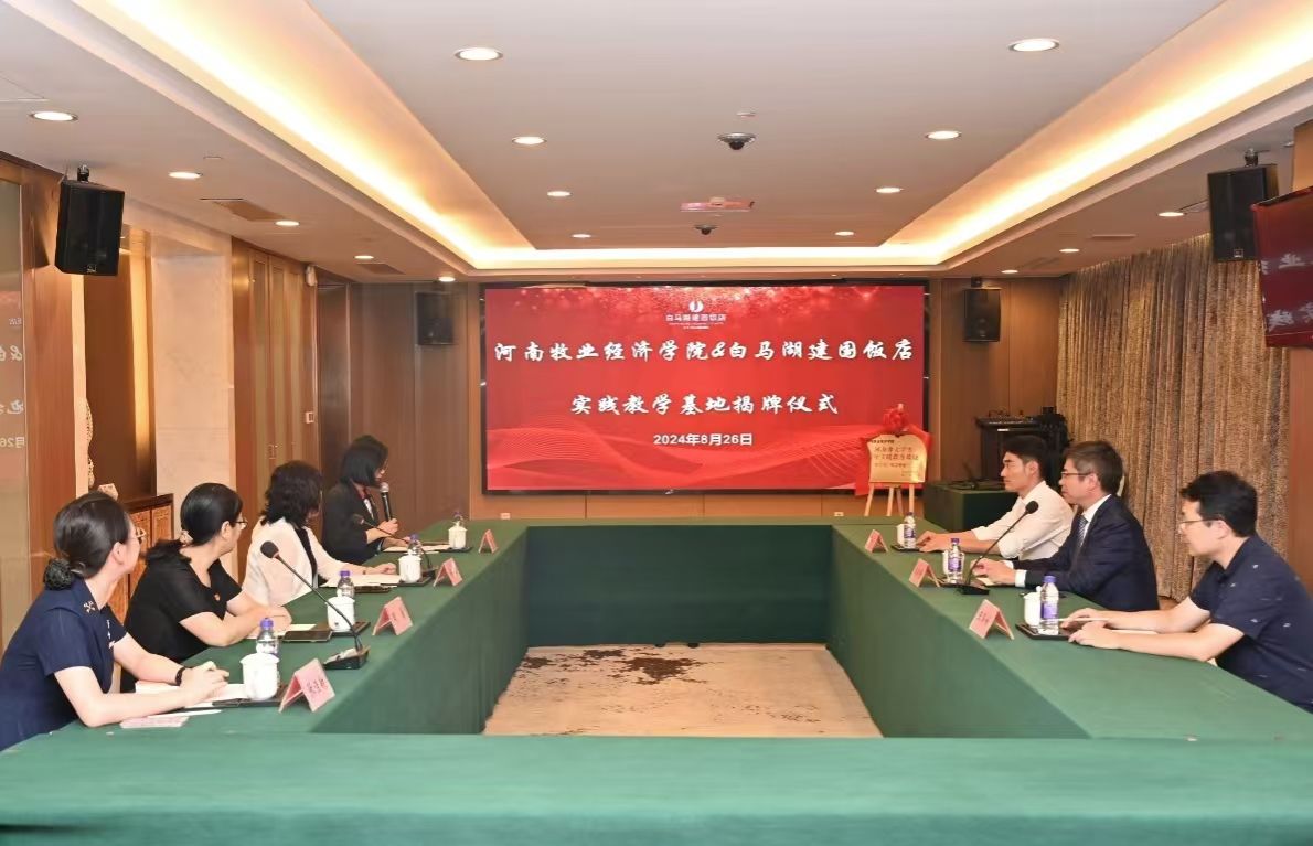 仪式伊始,总经理张静茹介绍了杭州白马湖建国饭店的发展历程,历经12年获得行业各界认可,承办超1万场大型会议活动,荣获优秀企业管理品牌、优秀饭店、先进单位等奖项。企业将充分发挥专业优势,有一套完整的人力资源管理体系,深度考虑学生职业发展路径,从而打造优质的实践平台,让企业、学校、社会共同受益。随后,我院院长王德静介绍了河南牧业经济学院国产又黄又硬又粗i的概况,是目前河南省办学历史最长,在校生规模最大,专业设置最为齐全的本科层次国产又黄又硬又粗i。是“河南省旅游业高素质应用型管理人才的培养基地”。王院长表示杭州是座美丽的城市,这座城市和中原大地有着深厚的历史渊源,望校企双方在今后的合作中共同进步,培养出更多优秀人才,并再次对今天出席仪式的领导与工作人员表示感谢。