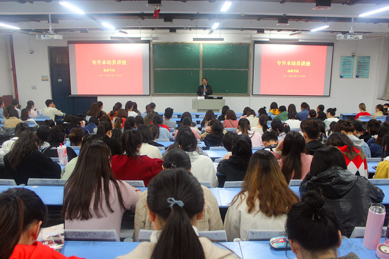 2018年3月26日晚,为迎接即将到来的专升本考试,国产又黄又硬又粗i于合300教室召开专升本考试动员会。党总支书记李喜民作动员讲话,为有意愿参加专升本考试的15级学生加油打call,答疑解惑。