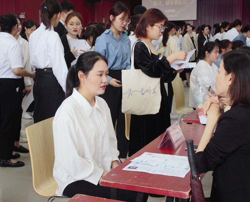 双选会现场人头攒动、络绎不绝。招聘者和应聘者一方兢兢业业,深思熟虑,在自己的职位上招贤纳士,表达着对人才渴望;一方朝气蓬勃,意气风发,一份份精致的简历,承载着梦想的信息,折射出对美好未来的无限憧憬和向往。参会企业以个性海报和宣传页的形式向学生宣传公司业务、招聘政策、职位需求等相关信息,毕业生们认真阅读用人单位招聘简章,就工作内容、岗位职责、发展前景、薪资待遇等问题与用人单位咨询交流。企业招聘专员对我院毕业生表示出强烈兴趣,充分肯定我院毕业生的专业水平和综合素养,认真宣讲推介,答疑解惑,与毕业生积极互动交流,使毕业生们更清晰地了解到不同岗位的需求,确保双向选择。热烈的气氛吸引了许多非毕业班的同学驻足聆听,以提前了解企业招聘流程及要求。