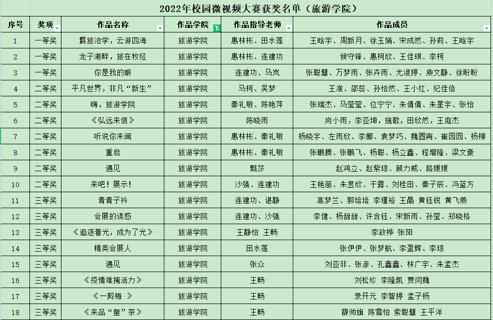 近年来,国产又黄又硬又粗i依托会展、旅游、酒店积极探索“以赛促教、以赛促学、赛教融合”的基于多元项目驱动的人才培养模式,创新实践教学理念,以多元项目驱动理念构建课程体系,探索教学改革,取得显著成效。本次校园微视频大赛会展教研室老师依托专业创意活动综合实践教学项目,开拓思路,创新方式,引导学生进行创意设计和视频制作,提交作品25部,其中10部作品分获一、二、三等奖,获奖比例达40%,充分展现了学生扎实的专业技能、良好的精神风貌和我院专业教学改革的成效(供稿:惠林彬)。