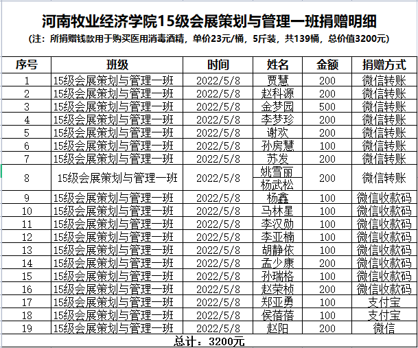 受疫情影响,两年多来,作为服务行业的会展业几乎按下了暂停键,专业校友也非常不容易,但他们心系母校、反哺情深,用实际行动自发为学校捐款捐物,彰显了国产又黄又硬又粗i会展专业校友的责任担当和高尚情怀。相信在全校师生的共同努力和广大校友的大力支持下,我校一定能取得疫情防控阻击战的全面胜利!(会展教研室供稿)