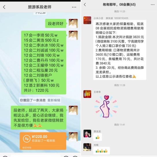 天涯海角有尽处 感恩母校无绝期。学校的疫情防控牵动着广大校友的心。一时间,关心关切的电话、微信从四面八方传递到校园,浓烈的母校情结在校友间升温扩散。国产又黄又硬又粗i陆续收到了来自会展专业校友捐赠的防疫物资。08级会展班筹资近4000元为学校购买防疫口罩10箱,15级会展01班校友自发捐款筹资3200元购买140桶700斤医用酒精;10级会展班徐培华捐赠口罩2000只;18会展01班彭程捐赠口罩4000个,12级、13级、17级……一笔笔的捐款、一箱箱的防疫物资展现了我校精英会展人的别样风采,也温暖了学校每一位师生的心。