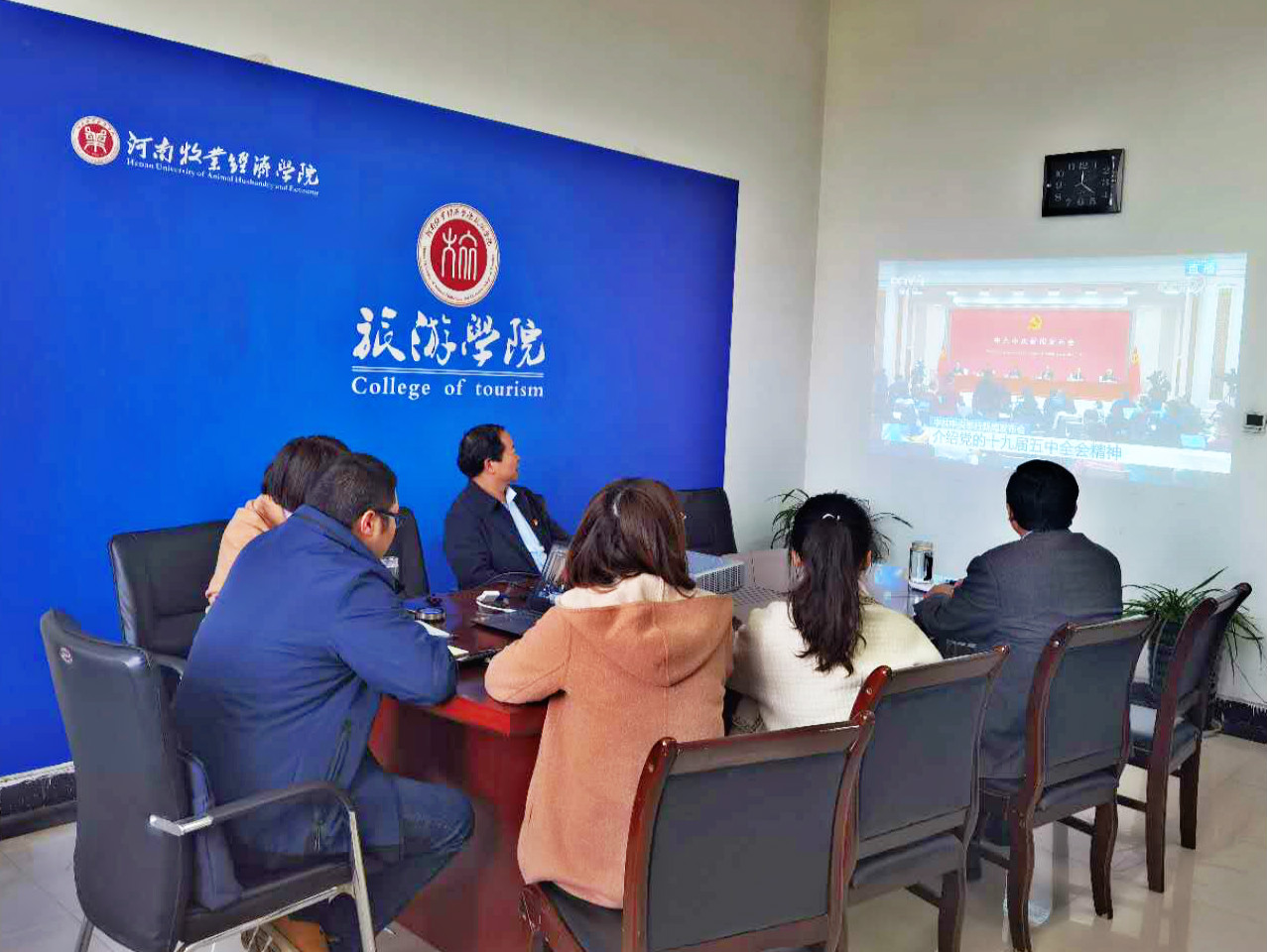 全体人员认真观看,并展开激烈讨论。大家纷纷表示,这次全会是在我国将进入新发展阶段、实现中华民族伟大复兴正处在关键时期召开的一次具有全局性、历史性意义的重要会议。在习近平总书记亲自领导下制定的《建议》,坚持了发扬民主、开门问策、集思广益,是开启全面建设社会主义现代化国家新征程、向第二个百年奋斗目标进军的纲领性文件。学院全体师生必将紧密团结在以习近平同志为核心的党中央周围,认真学习领会全会精神中的新内容、新提法,广泛开展学习讨论,从中找到工作切入点和努力方向,为下一步工作提供指引,汇聚奋斗“十四五”、奋进新征程的强大力量。