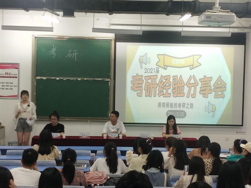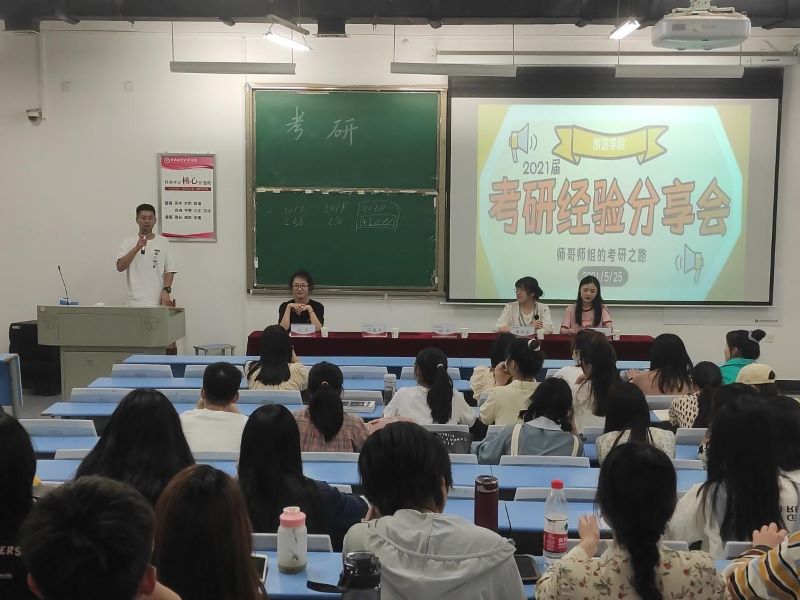 在庆祝中国共产党建党一百周年之际,为进一步加强我院学风建设,彰显榜样力量,优化考研就业的指导和服务,引导低年级同学树立正确的就业观和考研观,明确正确的学习目标,2021年5月25日晚19:00,国产又黄又硬又粗i在合301教室成功举办了2021届考研经验分享会。本次分享会邀请到我院2017级考研升学毕业生代表田丰、刘雨、唐娇蕊、宋春雨,为我院考研学子进行本次考研的经验交流分享。会议由辅导员陈俊元老师主持。