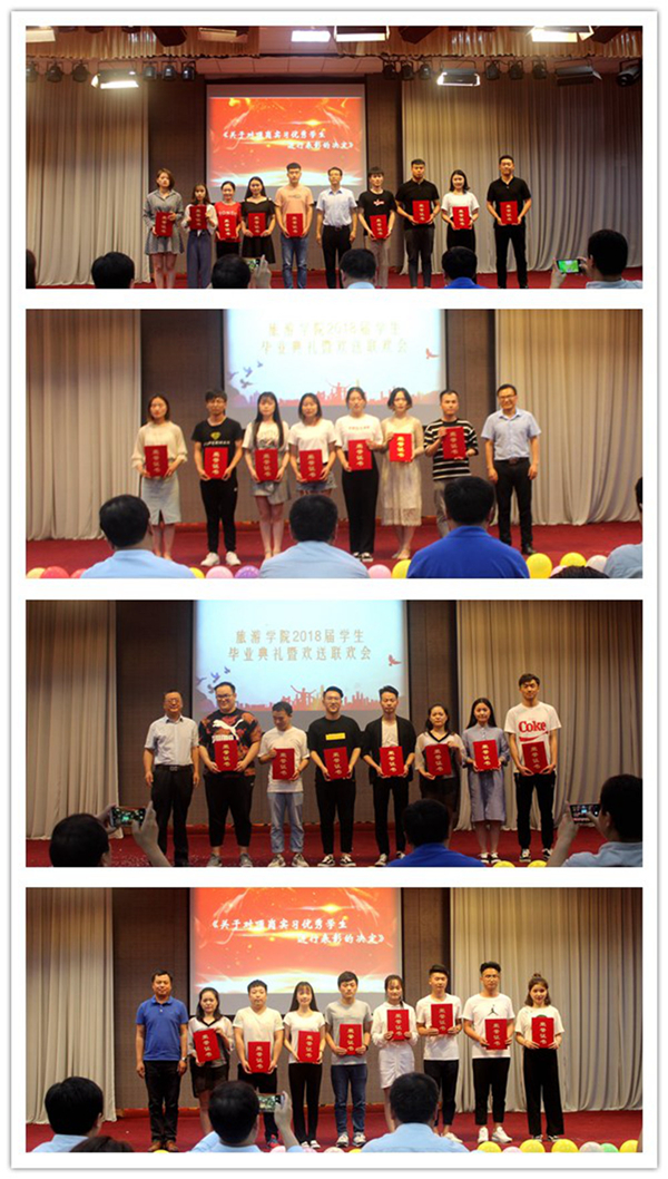 “起来,不愿做奴隶的人们……”,师们肃然而立齐唱国歌。饱满激昂的国歌声中,透着他们的坚毅与赤诚望着这一张张稚嫩而自信的面孔,李喜民书记在致辞时也是十分激动,言语之间无不透露着对即将踏上新征程的993毕业生无限的关怀与期望。李书记动情地谈到自己的感受:同学们在学校踏实学习在实习岗位上勤奋工作在社会里尽力奉献如此骄人的成绩,“春风十里不如你”,李书记为同学们感到骄傲?三年苦读锻炼,同学们收获了累累知识,收获了珍贵的友谊,如今“真正向理想迈进,向幸福靠拢”,李书记为同学们感到由衷高兴。针对同学们将面临的诸多困难与挑战,李书记向大家提出两点希望,一是希望大家客观认识社会,学会适应社会坚守梦想,坚守做人道德底线,在竞争压力下保持定力十足;二是希望同学们热情拥抱社会,告诉大家只要拥有饱满的理想和坚实的脚步,一定会收获一筐一筐的金苹果……作为师者长者,李书记寄语同学们,不论未来身处何方,都要学会加强自身建设,慢些脚步,等等灵魂,从容的面对人生的波澜谆谆教导与祝福在毕业生之间暖暖的传递带着这份祝愿与期望,杨盼盼同学代表全体2018届毕业生年来辛勤培育我们的老师们表达最真挚的敬意与感激之情“一日之师,终身为父”,这里是永远的家,定当不辜负老师们的期望,情感真挚,发于肺腑而后副院长马海燕宣读优秀毕业生优秀学生干部优秀先进个人获得者,院长徐新林教授,教研室主任张少飞、王中雨、陈道山、连建功等老师先后为其颁奖。