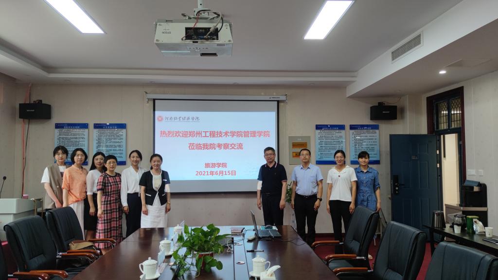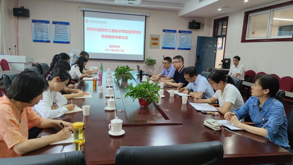 615日,郑州工程技术学院管理学院郭琰院长、旅游系主任史丹丹等一行7人到我院就旅游管理、会展经济与管理和酒店专业建设、实践教学、科学研究等方面进行考察交流。我院院长王德静、副院长王中雨及部分教师代表参加了此次交流活动,活动由院长王德静主持。