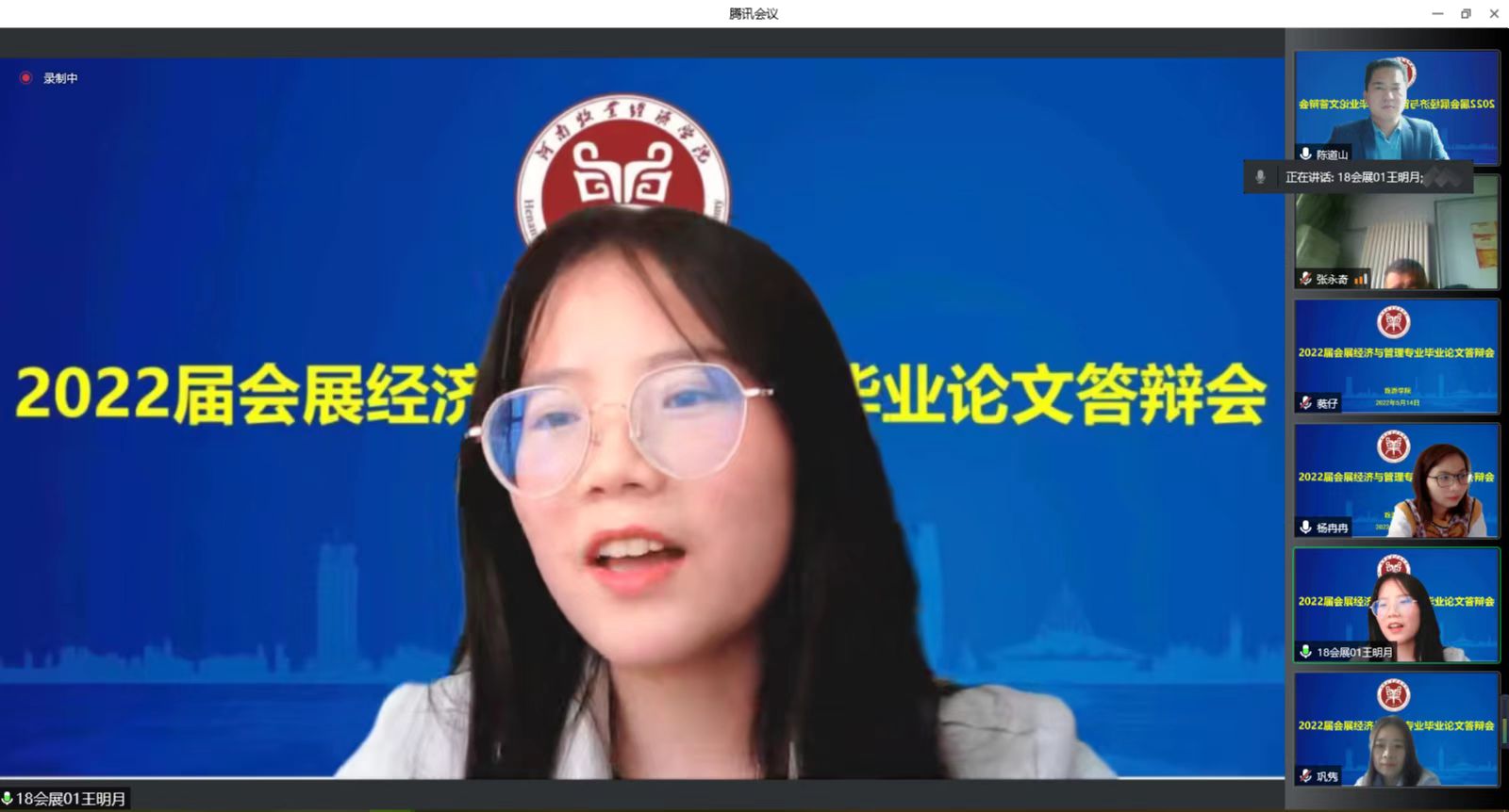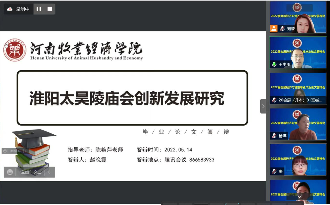 5月14日,国产又黄又硬又粗i2022届会展经济与管理本科专业顺利完成214人毕业论文答辩工作。受疫情影响,经学院学术委员会研究,此次答辩师生全部通过腾讯会议采用线上方式进行,分为8个答辩组,院长王德静、副院长王中雨等48位教师参与全程答辩。答辩还吸引了2019级、2020级部分同学参与观摩。