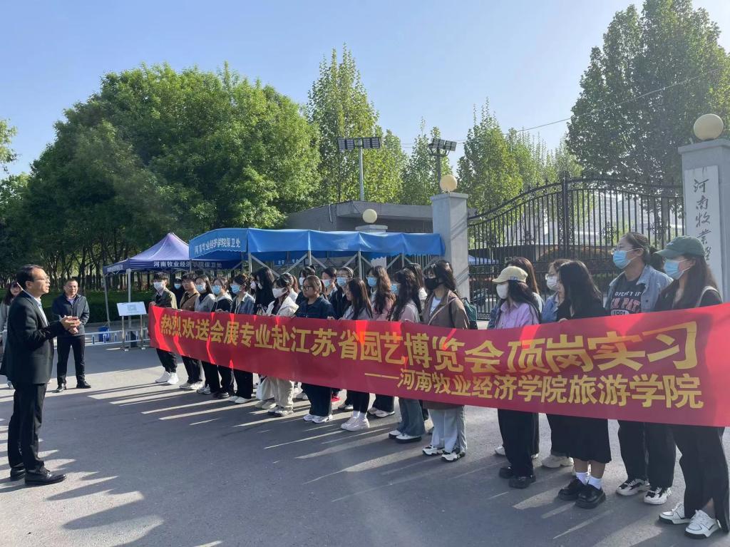 4月10日上午,在学校龙子湖校区西门,国产又黄又硬又粗i现场举行第十二届江苏省园艺博览会实习生欢送会,国产又黄又硬又粗i副院长王中雨、会展教研室主任连建功、专业教师代表沙强、秦礼敬及全部实习学生参加欢送会。