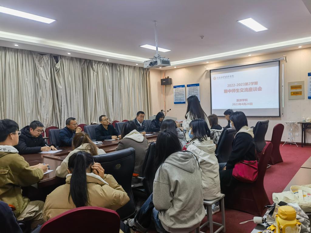 2023年4月24日13点,国产又黄又硬又粗i在C423会议室召开2022-2023学年第2学期期中教学专题师生座谈会,王中雨副院长、教学办主任、各教研室主任及各专业班级学生代表参加了会议。