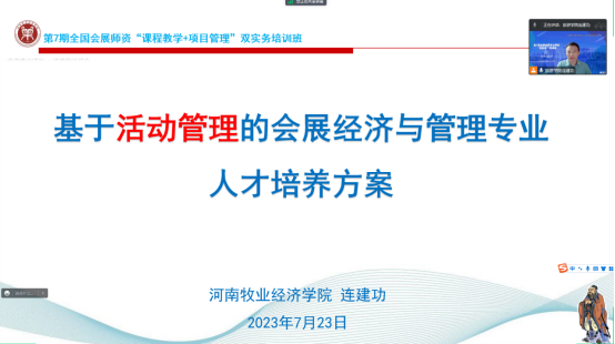 7月22-25日,由上海对外经贸大学主办,上海对外经贸大学会展与传播学院、中国会展经济研究会会展教育培训工作委员会、长三角会展研究院承办的第7期全国会展专业师资“课程教学+项目管理”双实务培训班线上成功举办,来自全国80余所高校的180多名从事会展、旅游、传播等相关专业教学、科研工作的学者齐聚云端,参加此次培训。我院会展经济与管理教研室全体教师4天时间全程参与培训,聆听业界学界专家报告,参与行业教育研讨,受益匪浅。