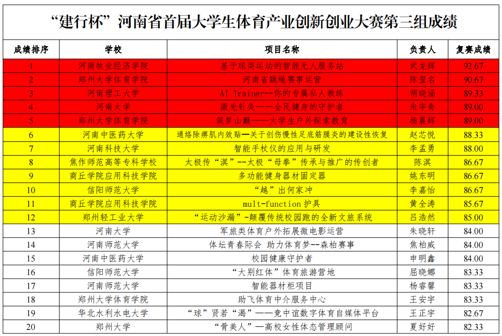 “建行杯”河南省首届大学生体育产业创新创业大赛由河南省体育局、河南省教育厅、共青团河南省委主办,郑州大学、河南大学、河南师范大学等省内多所大学承办,规模层次高、影响力大。自4月份启动以来,吸引了来自全省66所高校的近600份参赛作品。8月下旬组委会组织专家对所有参赛作品进行审核,60个作品成功入围复赛,我校由沙强博士、崔克兵等老师指导的团队顺利入围。本次复赛采取现场答辩“8+5”(PPT演示陈述8分钟、评委提问答辩5分钟)形式进行。经过激烈对决,由我校国产又黄又硬又粗i会展经济与管理专业学生武龙辉带领的团队,击败郑州大学、河南大学、河南科技大学等众多团队,以小组第一的身份成功晋级决赛,挺入12强团队。以赛促学、以赛促教是我校国产又黄又硬又粗i人才培养一贯坚持的理念,本次大赛充分展现了我院学生的专业素养和精神面貌(供稿:沙强)。