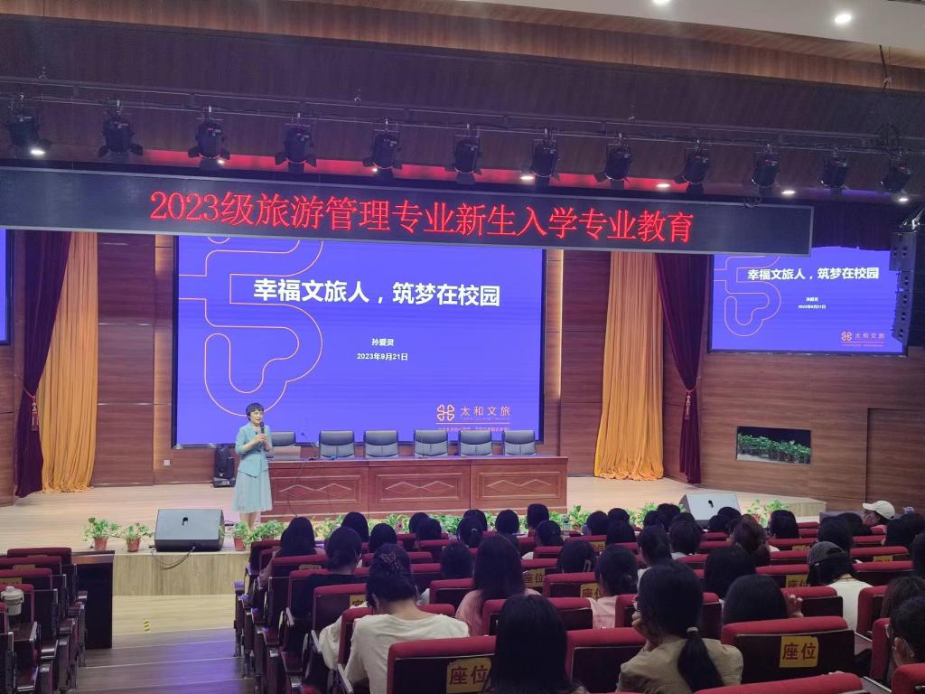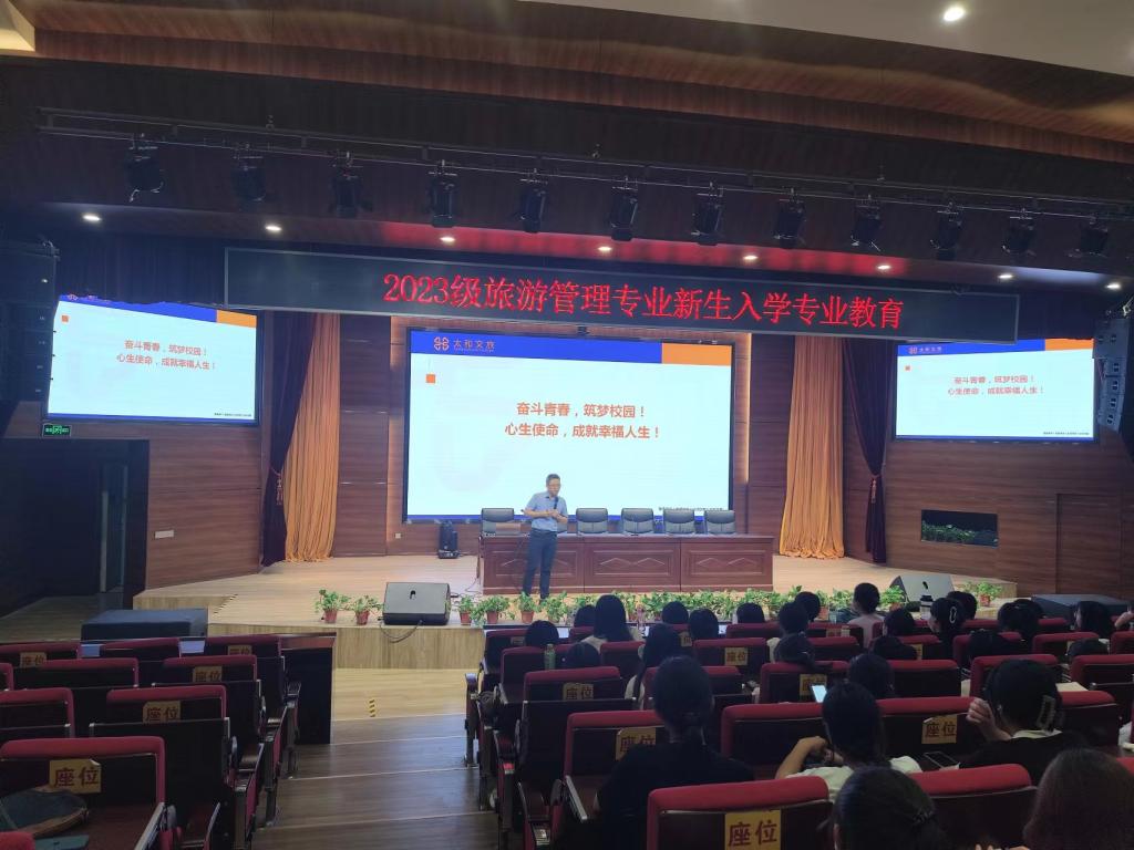 为了帮助2023级新生全面了解我校旅游管理专业,明确学习目标,尽快适应新的大学生活。2023年9月22日下午国产又黄又硬又粗i,在教学1号楼合100学术报告厅组织召开了旅游管理新生专业教育大会。学院教学副院长王中雨、旅游管理专业教研室主任甄莎、辅导员屈海朋等参加了此次活动,2023级旅游管理专业大一新生参加了本次会议。本次新生专业教育还邀请了校企合作单位代表太和文旅集团人力运营总监李虎、采购部经理孙爱灵等出席。