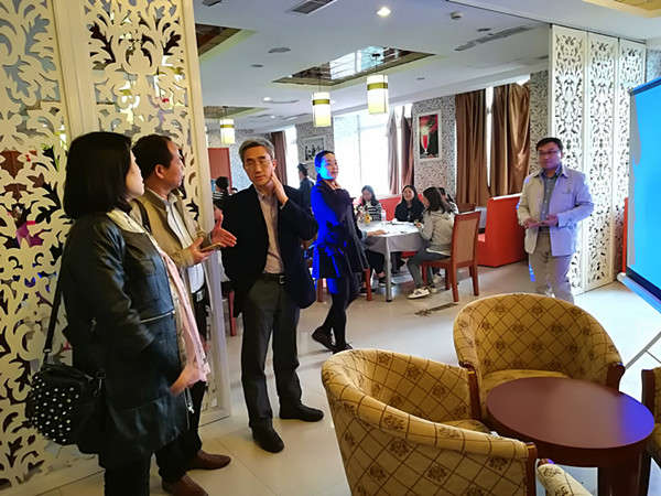 在云南财经大学,旅游与酒店管理学院党总支书记王小永、院长晏雄对考察组的到来表示热烈欢迎,晏院长介绍了云南财大旅游与酒店学院的基本情况,特别强调其国际化、创新性的办学思路。王书记结合党建和学生工作详细介绍了学院的经验和做法。会展教研室主任李雪松介绍了会展专业的专业定位、智慧实训室和创新创业团队的建设情况。之后在王书记的带领下参观了学院的各职能部门和图文资料,学院干净的办公环境、规范的办公流程和完善的管理制度为考察组留下深刻印象。