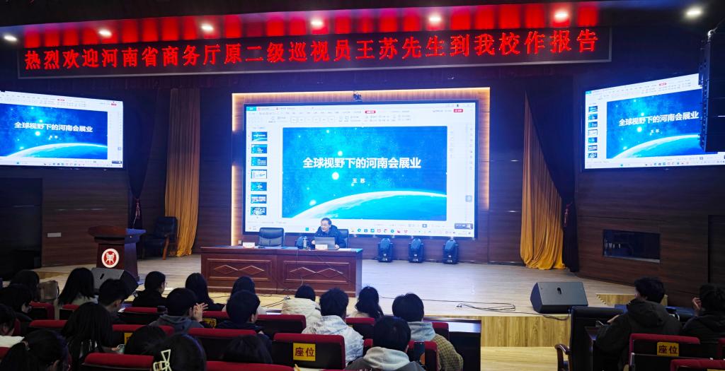 3月20日下午14:30我院在龙子湖校区学术报告厅A100举办“全球视野下的河南会展业”名师讲坛活动,邀请到河南省商务厅原二级巡视员、河南牧业经济学院客座教授王苏。本次活动由副院长王中雨主持,学院会展专业师生参加了本次讲座。