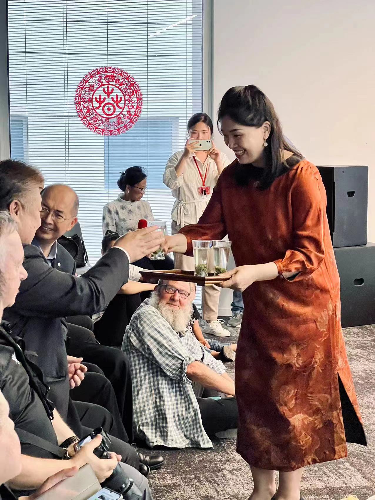 活动现场,贾红丽老师不仅讲解了不同种类茶的冲泡技巧,表演了中国乌龙茶茶艺,教大使馆文化参赞们学习使用中国闻香杯品茶,还带领民众在精心设计的《五彩缤纷中国茶》、《瓷出东方》静态文化展示区里感受中国茶文化,令以色列民众沉浸式体验到了独特的东方茶文化魅力。