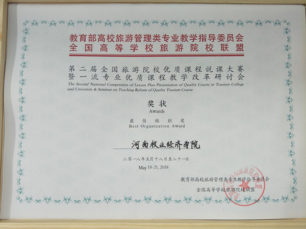 本次大赛由教育部高校旅游管理类专业教学指导委员会、全国高等学校旅游院校联盟主办,政策指引性强、参赛规模大、影响面广,是贯彻落实教育部《关于实施高等学校本科教学质量与教学改革工程的意见》以及《普通高等学校旅游专业类教学质量国家标准》重要举措,说课大赛通过竞争的方式,更好的提高教师教学水平,加强教师互动交流,推动旅游管理类专业教学质量提升。近年来,我院致力于本科教育教学理念的学习和实践,在学科建设、专业建设和课程建设上重点投入,形成了全体教师重视教学、研究教学的良好氛围,基于此,我院陆续在各类教学技能竞赛中荣获佳绩,并通过这种高规格比赛平台,积极与国内相关院校教师深入沟通交流,为我院教学改革积累经验和基础。
