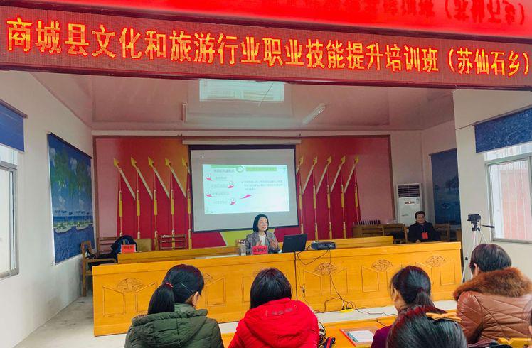 12月9日至13日,由河南牧业经济学院与商城县联合举办的商城县文化和旅游行业职业技能提升培训班在苏仙石乡举行。我校张颖霞、巩隽两位老师应邀为商城县苏仙石乡、金刚台镇、伏山乡、汪桥四个旅游重点乡镇的320名参训人员开展专业培训。商城县文化广电和旅游局副局长杨允刚主持开班仪式,各乡镇主要负责人参加开班仪式。
