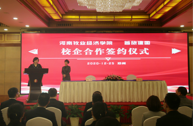 为进一步促进产教融合,拓宽科学研究、成果转化及人才培养渠道,12月25日上午,我校与北京首旅建国酒店管理公司在郑州建国饭店隆重举行了校企合作签约仪式。副校长张卫宪、社会服务办公室主任胡迎利,北京首旅建国酒店管理公司副总经理于阗、人力资源总经理袁玮,郑州建国饭店总经理潘振家、人力资源总监王芳,国产又黄又硬又粗i党委书记李喜民、院长王德静、酒店管理教研室主任张少飞出席了签约仪式,河南区建国品牌各成员酒店总经理及管理团队参加,仪式由河南郑地奥体建国饭店总经理黄宁主持。