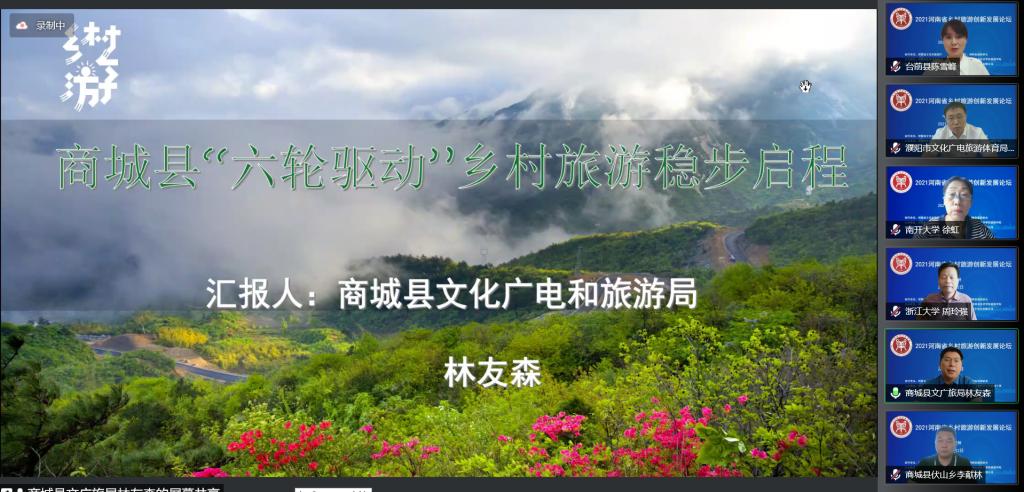 濮阳市文化和旅游局张玉民书记、商城县文化广电和旅游局林友森局长分别介绍了本地区旅游业发展情况,商城县伏山乡党委书记李献林、台前县夹河乡文化服务中心主任陈雪峰分别分享了国家级美丽休闲乡村——里罗城村和“百美村宿”——姜庄村发展乡村旅游的思路与做法。如诗如画云雾缭绕的山村、黄河岸边焕发生机的古村落,生动的讲述着乡村旅游发展的美好前景,以别样的形式拓展着论坛与会者的思想视野。